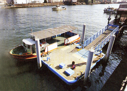 渡船場 区内には、12か所の橋と7か所の渡船場があります。 特に渡船は有名で、自動車が多くなった今も、区民・観光客の貴重な「足」となっています。大阪市内8か所中、実に7か所の渡船場が大正区にあります。